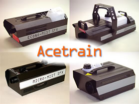 Acetrain smoke machines include the Econo-mist SFX, Micro-Mist SFX and Ultra-Mist SFX.
