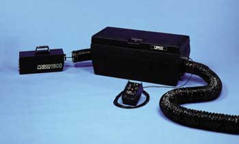 affixed to the front of a Rosco fog machine. Attach the